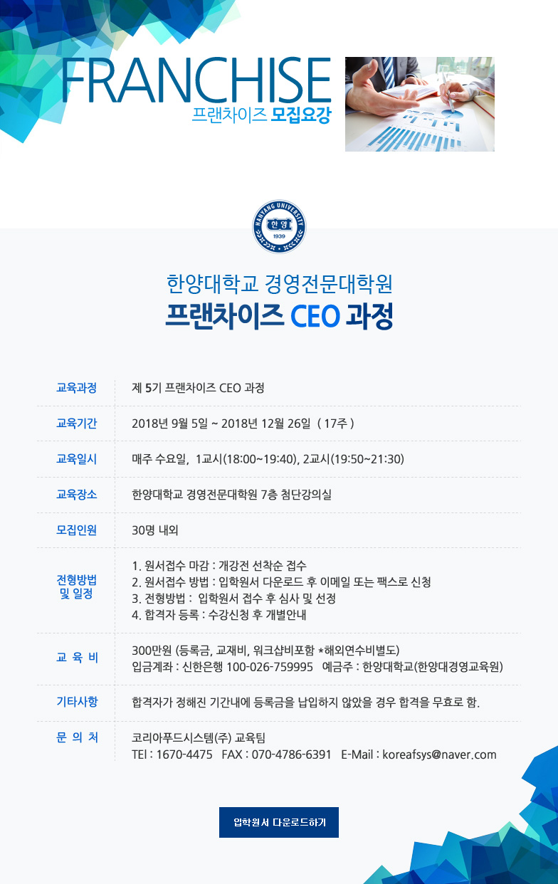 프랜차이즈 CEO과정 5기 모집요강 Hit 3943