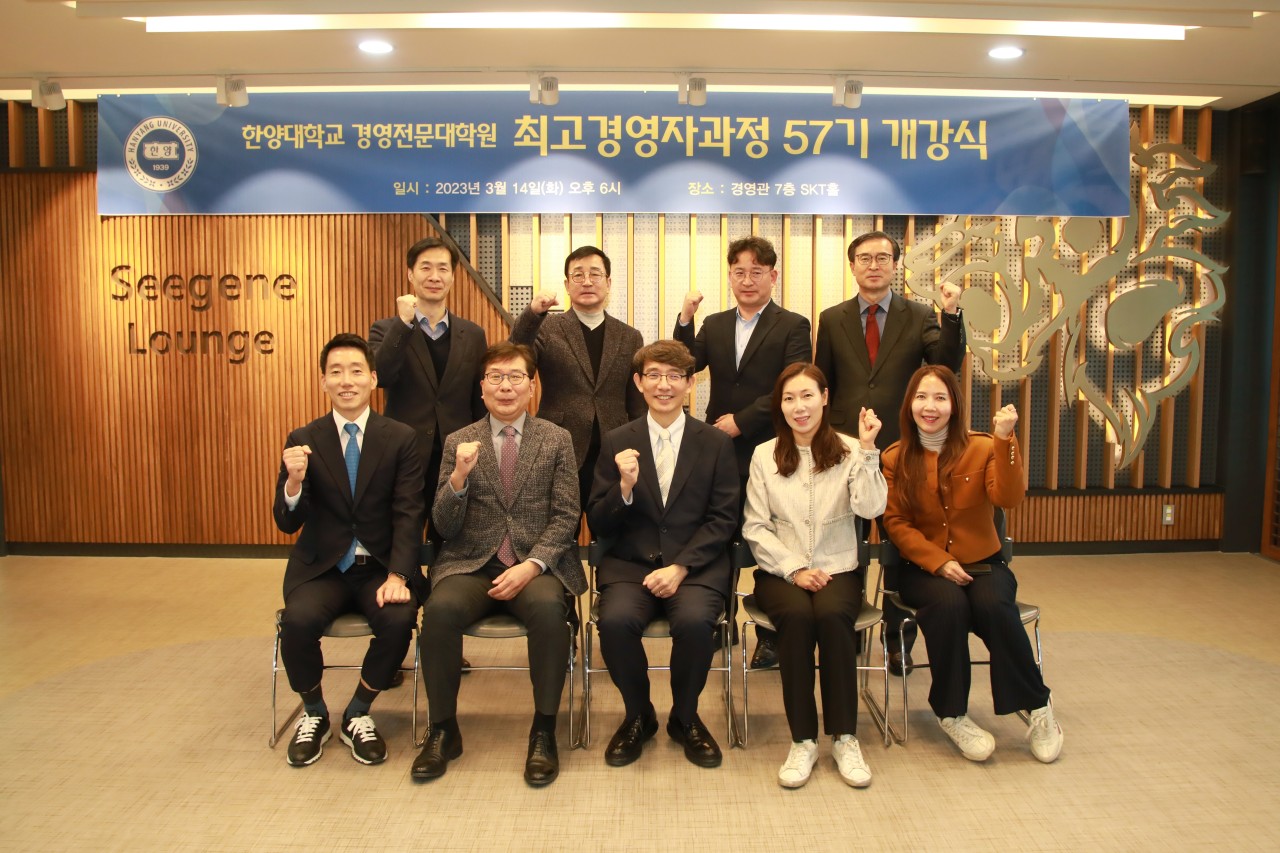 최고경영자과정 (AMP) 57기 개강식이 2023년 3월 14일 오후 6시에 한양대학교 경영관 7층 SKT홀에서 진행되었습니다.