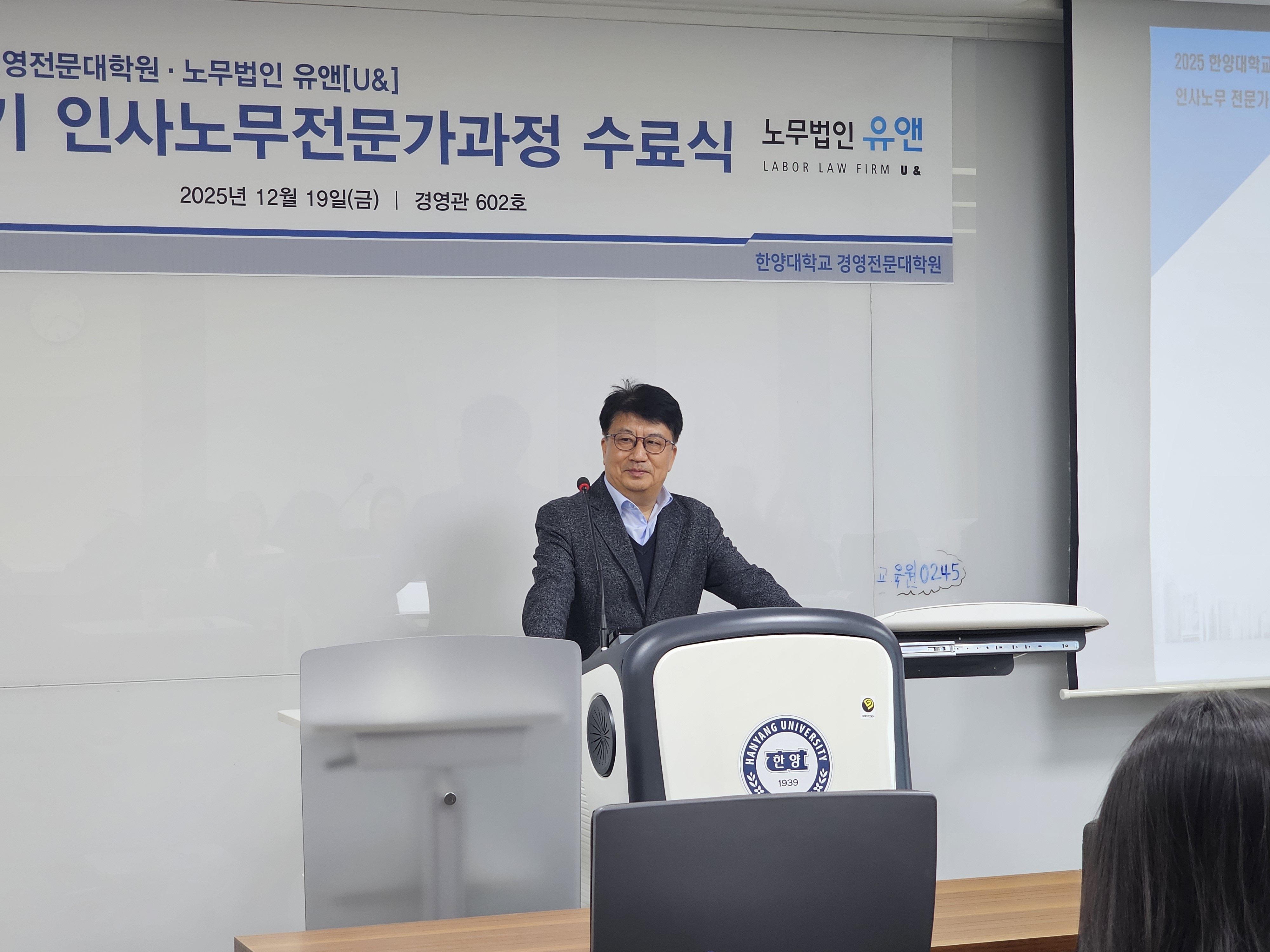 인사노무전문가과정 22기 수료식이 2025년 12월 19일에 한양대학교 경영관 602호에서 진행되었습니다.